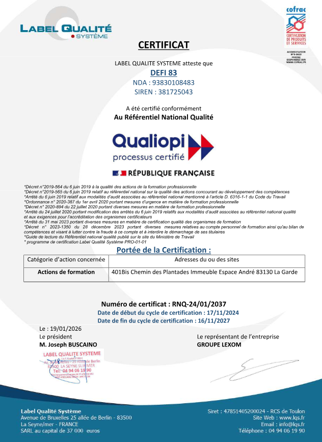Depuis le 17 novembre 2020, notre centre de formation est certifié Qualiopi.